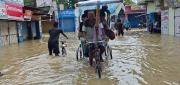 जनकपुर— हिजो(शुक्रबार) रातिदेखि निरन्तर भइरहेको वर्षाका कारण धनुषाका विभिन्न स्थानहरु जलमग्न भएका छन् । जनकपुरधाम, ढल्केवर, महेन्द्रनगरलगायत सहरी क्षेत्रसहित ग्रामिण भेगका गाउँहरु जलमग्न भएका छन् । बजारका अधिकांश पसलहरु बन्द छन् भने चहलपहल पनि सून्य देखिएको छ ।घुम्न आएका पर्यटकहरुलाई असहज भएको देखिएको छ । जल तथा मौसम विज्ञान विभागले जारी गरेको सूचना अनुसार तीन दिन लगातार पानी पर्ने उल्लेख रहेको छ ।मधेश प्रदेश सरकार अन्तर्गतको स्वास्थ्य निर्देशनालय सपही, धनुषाले पनि सूचना जारी गरी तीन दिन सर्तक रह्न सम्पूर्ण प्रदेशवासीलाई आग्रह गरेको छ । निर्देशनालयले तीन दिन अतिआवश्यक बाहेक आवत जावत न