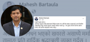 काठमाडौं— नेकपा एमालेका केन्द्रीय सदस्य महेश बर्तौलाले इन्डियन आइडल सिजन–३ का विजेता तथा चर्चित गायक अभिनेता प्रशान्त तामाङको असामयिक निधनप्रति दुःख व्यक्त गरेका छन् ।फेसबुक स्टाटस लेख्दै उनले दिल्लीमा भएको तामाङको निधनको खबरले आफू मर्माहत भएको उल्लेख गर्दै दिवंगत कलाकारप्रति हार्दिक श्रद्धाञ्जली अर्पण गरेका छन् । तामाङको निधनपछि विभिन्न सञ्चारमाध्यम, कलाकार तथा संगीतप्रेमीहरूले श्रद्धाञ्जली व्यक्त गरिरहेका छन् ।