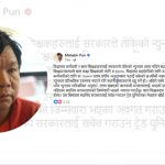 काठमाडौं— शिक्षा, विज्ञान तथा प्रविधि मन्त्री महावीर पुनले स्थानिय सरकारहरुलाई विद्यालय कर्मचारी र बाल शिक्षकहरुलाई सरकारले तोकेको न्युनतम तलव दिन आग्रह गरेका छन् । मंगलबार फेसबुकमा स्टेटस राख्दै उनले शिक्षामन्त्रालयले बाल कक्षा शिक्षक, विद्यालय सहयोगी र विद्यालय सहायक कर्मचारीको लागि तलब संघीय अनुदानबाट पठाई सकेको भन्दै बाँकी नपुग रकम नेपाल सरकारले तोकेको न्युनतम पारिश्रमिक रकममा नघट्ने गरि स्थानीय सरकारले थप्नु पर्ने बताए । उनले लेखेका छन्, ‘शिक्षामन्त्रालयले बाल कक्षा शिक्षकको लागि रु.१२०००, विद्यालय सहयोगीको लागि रु.१०,००० र विद्यालय सहायक कर्मचारीको लागि रू. १५००० तलब संघी
