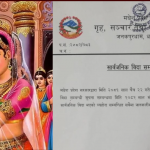 रौतहट— मधेश प्रदेश सरकारले विवाह पञ्चमी अवसरमा आज सार्वजनिक बिदा दिएको छ । प्रदेश सरकारको गृह, सञ्चार तथा कानुन मन्त्रालयले सोमबार एक सुचना जारी गर्दै राजपत्रमा प्रकाशित बमोजिम सार्वजनिक बिदा उल्लेख गरेको छ । विवाह पञ्चमीका मुख्य कार्यक्रम जनकपुरधाममा हुँदै आएको र नागरिक तथा कार्यालयहरूलाई आवश्यक जानकारीका लागि सूचनाको प्रकाशन गरिएको मन्त्रालयका शाखा अधिकृत राधेशंकर प्रसाद पालद्वारा जारी पत्रमा उल्लेख छ ।प्रदेश राजपत्र (चैत २२, २०८१) मा उल्लेख भएको बिदा व्यवस्थाअनुसार मङ्गलवार सार्वजनिक बिदा लागु हुने उनले जानकारी दिए । प्रत्येक वर्ष मार्गशीर्ष शुक्ल पञ्च