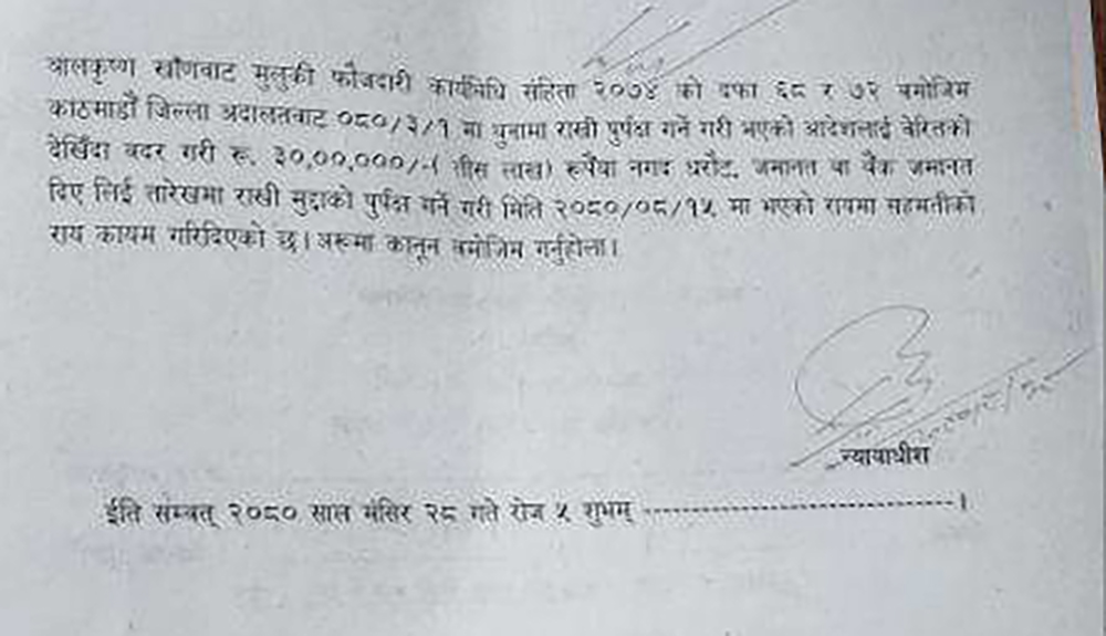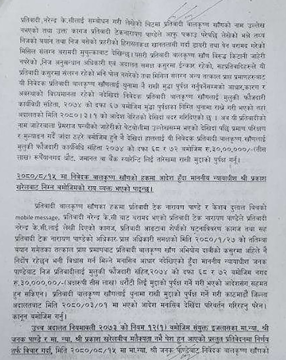 खरेल र पाण्डेको इजलासले भुटानी शरणार्थी नेता टेकनाथ रिजाललाई १५ लाख धरौटीमा छाड्न आदेश दिएको थियो। उनले धरौटी बुझाउन नसकेपछि थुनामै छन्।