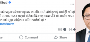 काठमाडौं— नेकपा माओवादी केन्द्रका नेता सुदन किरातीले जेन–जी आन्दोलनको प्रमुख एजेण्डा नै ओझेलमा पारिन थालेको आशंका व्यक्त गरेका छन् ।बिहीबार सामाजिक सञ्जाल फेसबुमा लेख्दै उनले जेन–जी आन्दोलनको प्रमुख एजेण्डा भ्रष्टाचार छानबिन गरी दोषीहलाई कारवाही गर्ने भएतापनि सरकार गठन भएको यतिका दिन भइसक्दा पनि सो आयोग गठन नभएको भन्दै उक्त आशंका व्यक्त गरेका हुन् । उनले लेखेका छन्,जेन–जी आन्दोलनको प्रमुख एजेण्डा भ्रष्टाचार छानबिन गरी दोषीहलाई कार्वाही गर्ने हो तर सुशीला कार्की सरकार गठन भएको यतिका दिन भइसक्दा पनि सो आयोग गठन भएन । के आन्दोलनको मुद्दा ओझेलमा पारिन थालेको हो ?’