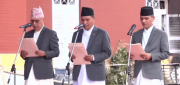 काठमाडौं— राष्ट्रपति रामचन्द्र पौडेलले तीन मन्त्रीलाई सपथ खुवाएका छन् । प्रधानमन्त्री सुशीला कार्कीले विस्तार गरेको मन्त्रीपरिषदका तीन सदस्यले राष्ट्रपति पौडेलबाट सपथ लिएका हुन ।सपथ लिनेमा अर्थमन्त्री रामेश्वरप्रसाद खनाल, ऊर्जामन्त्री, भौतिक पूर्वाधार तथा यातायात र सहरी विकास मन्त्री कुलमान घिसिङ र गृहमन्त्री, कानून तथा संसदीय मामिला मन्त्रालयमा ओमप्रकास खनाल छन् ।