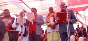 जनकपुर— मधेश प्रदेशका नवनियुक्त मुख्यमन्त्री कृष्णा यादवसहित तीनजना मन्त्रिहरुले पद तथा गोपनीयताको सपथ लिएका छन् ।आइतबार जनकपुरधामस्थित मधेश भवनभित्र आयोजना गरिएको सपथ ग्रहण कार्यक्रममा उनीहरुले पद तथा गोपनीयताको सपथ लिएका छन् । गत शुक्रबार सात दलिय गठबन्धनले नेपाली कांग्रेसका कृष्णा यादवको नेतृत्वमा मधेश प्रदेश सरकारका लागि दाबी पेश गरेका थिए । सोही दिन प्रदेश प्रमुख डा.सुरेन्द्र लाभ कर्णले कृष्णा यादवलाई मुख्यमन्त्री पदमा नियुक्त गरेका थिए ।तत्कालका लागि नेपाली कांग्रेस, जनमत पार्टी र नेकपा एकीकृत समाजवादी पार्टीबाट १÷१ जनालाई मन्त्री पद दिएर मन्त्रीमण्डल विस्तार गरिएको छ ।जनमत पार्टीबाट महे