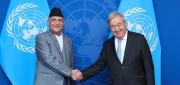 काठमाडौं–प्रधानमन्त्री केपी शर्मा ओलीले न्युयोर्कमा संयुक्त राष्ट्र महासचिव एन्टेनियो गुटेर्रेससँग भेटवार्ता गरेका छन् । भेटमा नेपालको विकास, जलवायु परिवर्तन, शान्ति प्रक्रिया र द्विपक्षीय सम्बन्ध सुदृढीकरणका विषयमा छलफल भएको छ । प्रधानमन्त्री ओलीले शान्ति स्थापनामा संयुक्त राष्ट्रसंघको सहयोगका लागि आभार व्यक्त गर्दै, विकास र जलवायु परिवर्तनका चुनौतीहरू सामना गर्न थप सहयोगको आवश्यकता रहेको बताए । महासचिव गुटेर्रेसले नेपालजस्ता हिमाली राष्ट्रलाई जलवायु परिवर्तनको असरबाट जोगाउन अन्तर्राष्ट्रिय सहयोगको महत्त्वमा जोड दिएका छन् ।भेटवार्तामा दुवै पक्षले द्विपक्षीय सम्बन्धलाई अझ सुदृढ बनाउने र न