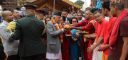 काठमाडौं- राष्ट्रपति रामचन्द्र पौडेलले श्रीकृष्ण जन्माष्टमी पर्वको अवसरमा सोबार ललितपुरको पाटनस्थित कृष्ण मन्दिर दर्शन गरेका छन् । सो अवसरमा पौडेलले कृष्ण मन्दिरभित्र भगवान श्रीकृष्णको पूजा आराधना र प्रसाद समेत ग्रहण गरे । श्रीकृष्ण जन्माष्टमीको अवसरमा पूजा आराधनाका लागि आज बिहानैदेखि कृष्ण मन्दिरमा भक्तजनको घुँइचो लागेको छ । हिन्दु धर्मावलम्बीले भाद्र कृष्णअष्टमीलाई भगवान कृष्णको जन्माष्टमी पर्वका रूपमा मनाउने गर्दछन् । द्धापर युगमा भाद्र कृष्ण अष्टमीकै दिन भगवान श्रीकृष्णको जन्म भएको मानिन्छ । किंवदन्ती अनुसार पाटनमा महादेव मन्दिर बनाउन राखिएको जग्गामा सपनामा भगवान श्रीकृ