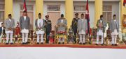 काठमाडौं— राष्ट्रपति रामचन्द्र पौडेलसमक्ष नवनियुक्त प्रधानमन्त्री खड्गप्रसाद ओली (केपी ओली) ले सोमबार प्रधानमन्त्रीको पद तथा गोपनीयताको शपथ ग्रहण गराएका छन्। राष्ट्रपति भवनमा आयोजित विशेष समारोहमा ओलीले चौथो पटक प्रधानमन्त्री पदको शपथ लिएका हुन् । ओली संसद्को सबैभन्दा ठुलो दल नेपाली कांग्रेसको समर्थनमा प्रधानमन्त्री बनेका हुन् । यसैगरी, नवनियुक्त उपप्रधानमन्त्रीद्वय प्रकाशमान सिंह र विष्णु पौडेलले उपप्रधानमन्त्री पदको पद तथा गोपनीयताको शपथ ग्रहण गरेका छन् । सिंहले शहरी विकास मन्त्रालयको जिम्मेवारी पाएका छन् भने पौडेल अर्थमन्त्री बनेका छन् । वरीयतामा सिंह अगाडि छन् । सोही सम