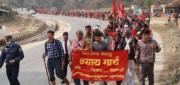काठमाण्डौ । नेपालको पूर्वी र पश्चिमी क्षेत्रबाट सुरु भएको मिटरब्याज र लघुवित्त पीडितहरूको न्याय मार्चको टोली धादिङबाट काठमाडौंतर्फ अघि बढेको छ । तराईका २० जिल्ला र भित्री मधेशका ८ जिल्लाका गरी २८ जिल्लाका पीडितहरू अहिले पैदलै हिँडेर न्याय खोज्न काठमाडौं हिँडेका हुन् ।लत्ताकपडा र झोला भिरेर सयौं किलोमिटरको राजमार्गमा पैदल यात्रा गरिरहेका मिटरब्याज र लघुवित्तपीडितले आफ्ना मागहरु पूरा नभएसम्म घर नफर्किने बताएका छन् । मिटर व्याज र लघुवित्तले जग्गा–जमिन नै लिलाम गर्ने अवस्था आएकाले न्याय माग्न काठमाडौं आएको सर्लाहीकी ६६ वर्षीय इन्द्रदेवी लोहारले बताए ।तीन वर्षदेखि सरकारले आश्वासन द
