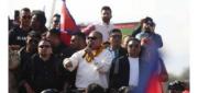 काठमाडौँ । व्यवसायी दुर्गा प्रसाईले आफ्नो समूहले गरेको प्रदर्शन आन्दोलन आन्दोलन मात्रै नभई जनविद्रोह भएको बताएका छन् । ललितपुरको बल्खुमा बिहीबार भएको आफू नेतृत्वको प्रदर्शनलाई सम्बोधन गर्दै उनले देशबाट संघीय व्यवस्था हटाउने चाहना बोकेर आएको भन्दै विद्रोहको विरुवा रोपिएको दाबी गरे ।‘हाम्रो युवाहरू बाहिर जाने अवस्था परिवर्तन गर्न आएको हो, मभित्र धेरै ठूलो पीडा छ, म दुर्गा मातालाई साक्षी राखेर तपाईहरुको अगाडि मर्न आएको हो । म मर्न चाहान्छु, यो सङ्घीयता भन्नेलाई लात्ताले दिएर खेद्न चाहन्छु,’ उनले भने, ‘यो आन्दोलन आन्दोलन होइन, यसलाई तपाईले आन्दोलन नभन्नुस् यो जनताले गरेको जनविद्रोह हो । हामीले धेर
