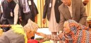 काठमाडौँ । राष्ट्रपति रामचन्द्र पौडेलले ९१ वर्षीया भाउजू विष्णुमाया पौडेलबाट दशैँको टीका, जमरा, प्रसाद र आशिर्वाद ग्रहण गरेका छन् । साथै गुरु पुरोहितबाट पनि दशैँको दीका, जमरा, प्रसाद गरे । शीतल निवासस्थित राष्ट्रपति कार्यालयमा आज राष्ट्रपति पौडेलले दशैँको शुभ साइत ११ बजेर २ मिनेटमा टीका प्रसाद ग्रहण गरेका हुन् । आफू टीका ग्रहण गरेपछि उनले परिवारका सदस्यलाई टीका लगाइदिएका हुन् । विजया दशमीका अवसरमा आज राष्ट्रपति पौडेलले अति विशिष्ट व्यक्तित्वहरुलाई दिउँसो २ बजेदेखि ३ बजेसम्म र सर्वसाधरणका लागि ३ बजेदेखि ५ बजेसम्म टीका प्रसाद प्रदान गर्ने कार्यक्रम रहेको छ ।राष्ट्रपति कार्याल