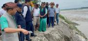 भरतपुर । भरतपुर महानगरपालिका प्रमुख रेनु दाहालले सोमबार भरतपुर– २७, न्यूरेचोक,भरतपुर–२८ को लौखरीको तामाङ टोल र वडा नं २६ को भगडीको शिवालय मन्दिर नजिक आइतबार नारायणी नदीले कटान गरेको क्षेत्रको स्थलगल निरीक्षण गरेकीछिन। उनले त्यसक्रममा नदी बस्तीमा नपस्ने आश्वासन दिएकी छिन।सरोकारवालासहित नदी तटीय क्षेत्रमा निरीक्षणमा पुगेकी प्रमुख दाहालले तटबन्धको काम धमाधम भइरहेकाले अर्को वर्षबाट समस्या नहुने बताएकी छिन।