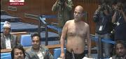 काठमाडौं । प्रि-बजेटबारे छलफल गर्न प्रतिनिधिसभा बैठक सुरु भएको छ । बिहान ११ बजे बस्ने तय भएको बैठक करिब आधा घण्टा ढिला गरी सुरु भएको हो । बैठकको कारबाही प्रारम्भ भएको जानकारी दिँदै सभामुख देवराज घिमिरेले आजको बैठकमा विशेष समयको प्रवन्ध नगरिएको जनाएपछि सांसदहरुले उठेर आपत्ति जनाएका छन् ।सभामुखले विशेष समय नछुट्याएको विरोधमा स्वतन्त्र सांसद अमरेशकुमार सिंहले संसदभित्रै कपडा खोलेका छन् । सभामुखले सदनभित्र सव्य व्यवहार प्रस्तुत गर्न आग्रह गर्दै संसद नियमावलीको नियम ३० अन्तर्गत बैठकमा असव्य व्यवहार नगर्न चेतावनी दिए । सभामुखको चेतावनी पछि सांसद सिंहले आफ्नो कपडा लगाएका छन्