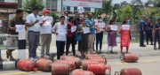 बिर्तामोड / गत जेठ ८ गतेदेखि नेपाल आयल निगमले पेट्रोल, डिजेल र मट्टितेल प्रतिलिटर १० रुपैयाँका दरले बढाएको विरोधमा उपभोक्ताले मुख्यमन्त्री कार्यालयको गेटमा प्रदर्शन गरेका छन् ।खाना पकाउने ग्यास र पेट्रोलियम पदार्थको मूल्यवृद्धिको विरोधमा उपभोक्ताले प्रदेश १ को मुख्यमन्त्री कार्यालय अगाडि खाली सिलिन्डर राखेर प्रदर्शन गरेका हुन् ।यस्तै खाना पकाउने ग्यासको मूल्यमा पनि प्रतिसिलिन्डर २ सय रुपैयाँ बढाएको छ । इन्धनको मूल्य बढेसँगै पेट्रोलको मूल्य प्रतिलिटर १८० रुपैयाँ तथा डिजेल र मट्टितेलको मूल्य १६३ रुपैयाँ पुगेको छ । खाना पकाउने एलपी ग्यासको भाउ प्रतिसिलिन्डर १८ सय पुगेको छ ।