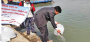 झापा / सप्तरी र सुनसरी जिल्लाको बीचमा पर्ने सप्तकोसी नदीमा ३० हजार माछाका भुरा छाडिएको छ ।प्राकृतिक जलाशय मत्स्य प्रवर्द्धन तथा संरक्षण केन्द्र मकवानपुरले राहु र नैनी जातका ३० हजार माछाका भुरा नदीमा छाडेको हो ।प्राकृतिक जलाशय मत्स्य प्रर्वद्धन तथा संरक्षण केन्द्र मकवानपुरका कार्यालय प्रमुख सरोज कुमार यादवले जलीय जैविक विविधता संरक्षण तथा प्राकृतिक जलाशयमा आश्रित समुदायको आयस्तर अभिवृद्धिका लागि स्थानीय जातका माछा नदीमा छाडिएको जानकारी दिएका छन ।खोला नालामा फोहोर ढल मिसाउने, विषादी हाल्ने, करेन्ट लगाउने, पासो थाप्ने लगायतका कारणबाट जलचर मासिने क्रम बढेकाले यसको संरक्षण गरी नदीमा आश्रित समु