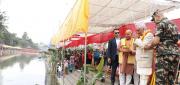 काठमाडौं— राष्ट्रपति रामचन्द्र पौडेलले प्रथम महिला सबिता पौडेलका साथ छठ पर्व २०८२ का अवसरमा छठी माताको पूजा आराधना गरेका छन् । राष्ट्रपति पौडेलले पशुपति क्षेत्रस्थित गुह्वेश्वरी मन्दिर अघि बाग्मती किनार गौरीघाटमा तयार गरिएको छठ पूजास्थलमा पुगेर सोमबार छठी माताको पूजा अर्चना गरेको राष्ट्रपतिको स्वकीय सचिवालयले जनाएको छ । राष्ट्रपति पौडेल र प्रथम महिला सविता पौडेलले पूजा स्थलमा अस्ताउँदो सूर्यलाई अर्घदान गरेका थिए । राष्ट्रपति पौडेल गुहृेश्वरीमा पुग्दा राष्ट्रिय सभा सदस्य विष्णुदेवि पुडासैनी, पशुपति विकास कोषका पदाधिकारी, काठमाडौं महानगरपालिका वडा नम्बर ८ का वडा अध्यक्ष आशामान संगत, छठ