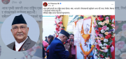 काठमाडौं— नेकपा एमालेका अध्यक्ष केपी शर्मा ओलीले पृथ्वी जयन्ती तथा राष्ट्रिय एकता दिवसको अवसरमा सबैलाई शुभकामना दिएका छन् ।आइतबार पृथ्वी जयन्तीको अवसरमा सामाजिक सञ्जाल मार्फत शुभकामना दिदैँ आगजनी र विनाशकारी प्रवृत्तिको अन्त्य गर्दै रचना, निर्माण, विकास र संरक्षणको मनोवल बढाउनु पर्ने धारणा व्यक्त गरेका छन् ।उनले लेखेका छन्, ‘आज पृथ्वी जयन्ती तथा राष्ट्रिय एकता दिवस, ध्वंश, आगजनी र विनाशकारी प्रवृत्तिको अन्त्य गर्दै रचना, निर्माण, विकास र संरक्षणको मनोवल बढाऔं १सबैलाई राष्ट्रिय एकता दिवसको शुभकामना !’